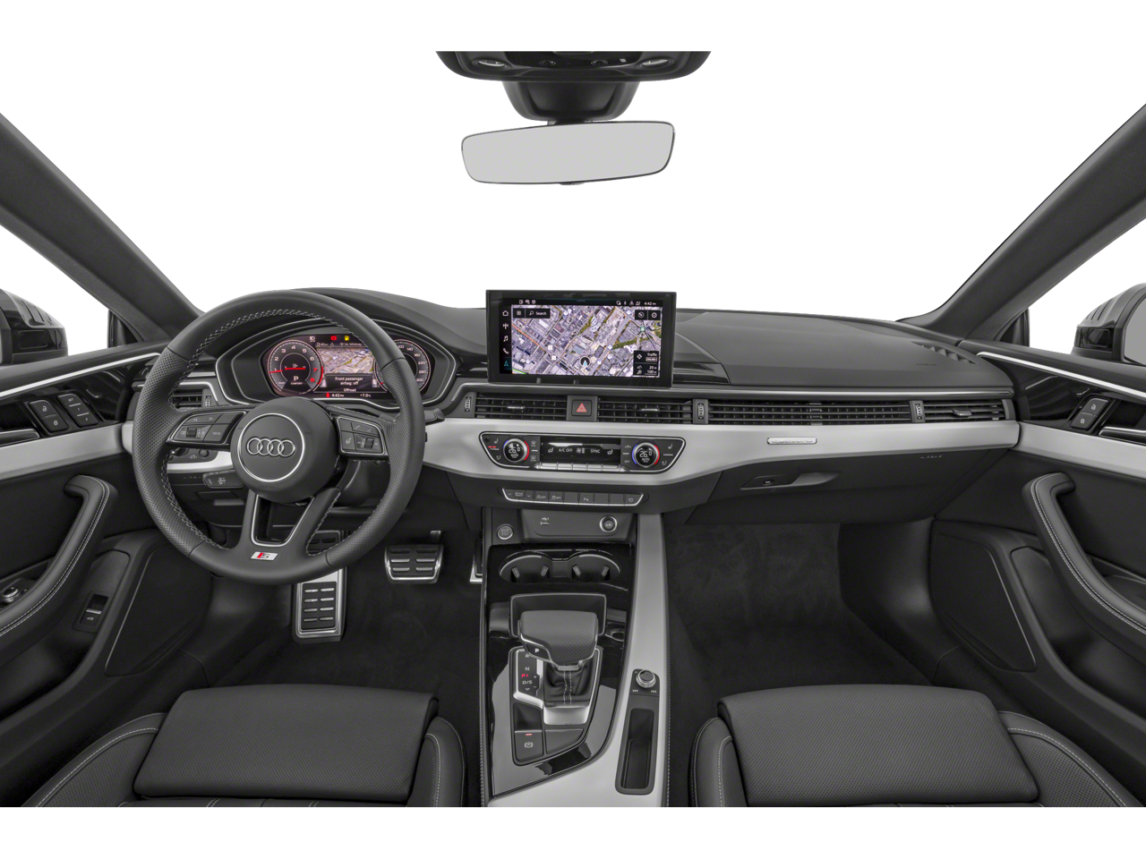 10 Speakers, 4-Wheel Disc Brakes, ABS brakes, Air Conditioning, Alloy wheels, AM/FM radio, Anti-whiplash front head restraints, Auto High-beam Headlights, Auto-dimming Rear-View mirror, Automatic temperature control, Brake assist, Bumpers: body-color, Compass, Delay-off headlights, Driver door bin, Driver vanity mirror, Dual front impact airbags, Dual front side impact airbags, Electronic Stability Control, Emergency communication system: Audi connect CARE, Exterior Parking Camera Rear, Four wheel independent suspension, Front anti-roll bar, Front Bucket Seats, Front Center Armrest, Front dual zone A/C, Front fog lights, Front reading lights, Garage door transmitter: HomeLink, Genuine wood console insert, Genuine wood dashboard insert, Genuine wood door panel insert, Heated door mirrors, Heated front seats, Heated Front Sport Seats, Illuminated entry, Knee airbag, Leather Seating Surfaces, Leather Shift Knob, Leather steering wheel, Low tire pressure warning, Occupant sensing airbag, Outside temperature display, Overhead airbag, Overhead console, Panic alarm, Passenger door bin, Passenger vanity mirror, Power adjustable front head restraints, Power door mirrors, Power driver seat, Power moonroof, Power passenger seat, Power steering, Power windows, Radio data system, Radio: Audi Sound System, Rain sensing wipers, Rear air conditioning, Rear anti-roll bar, Rear reading lights, Rear seat center armrest, Rear window defroster, Remote keyless entry, Speed control, Speed-sensing steering, Speed-Sensitive Wipers, Split folding rear seat, Steering wheel mounted audio controls, Tachometer, Telescoping steering wheel, Tilt steering wheel, Traction control, Trip computer, Turn signal indicator mirrors, Variably intermittent wipers, Wheels: 18 5-Double-Spoke Design.