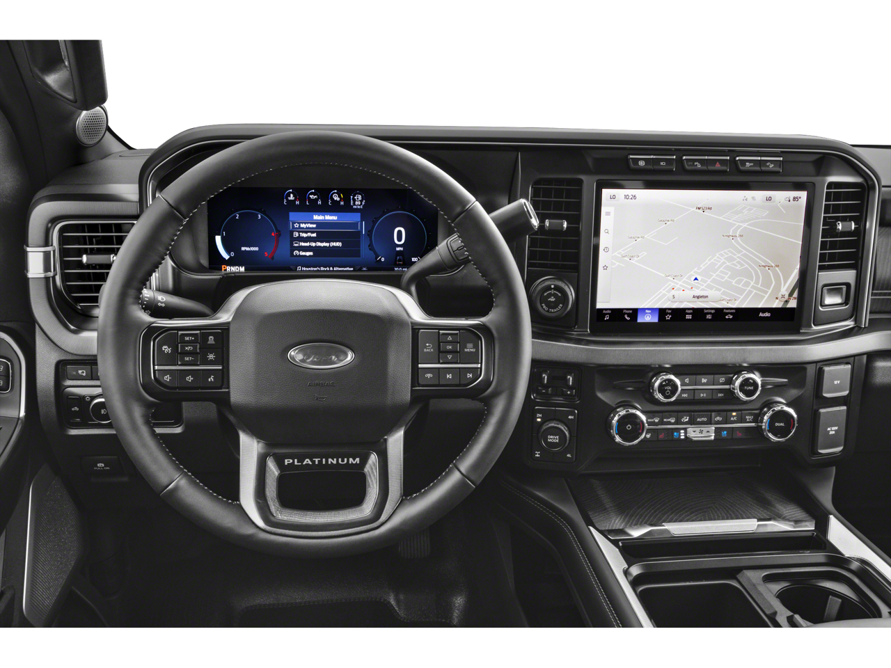 17 Forged Polished Aluminum Wheels, 18 Speakers, 4-Wheel Disc Brakes, ABS brakes, Adjustable pedals, Air Conditioning, Alloy wheels, AM/FM radio: SiriusXM with 360L, Auto High-beam Headlights, Auto tilt-away steering wheel, Auto-dimming Rear-View mirror, Automatic temperature control, Brake assist, Bumpers: body-color, Compass, Delay-off headlights, Driver door bin, Driver vanity mirror, Dual front impact airbags, Dual front side impact airbags, Dual rear wheels, Electronic Stability Control, Emergency communication system: SYNC 4 911 Assist, Exterior Parking Camera Rear, Flow-Through Console, Front anti-roll bar, Front Bucket Seats, Front Center Armrest, Front dual zone A/C, Front fog lights, Front reading lights, Fully automatic headlights, Garage door transmitter, GVWR: 14,000 lb Payload Package, Heads-Up Display, Heated door mirrors, Heated front seats, Heated rear seats, Heated steering wheel, Illuminated entry, Leather steering wheel, Limited Slip w/3.73 Axle Ratio, Low tire pressure warning, Memory seat, Navigation system: Connected Navigation, Outside temperature display, Overhead airbag, Overhead console, Panic alarm, Passenger door bin, Passenger vanity mirror, Pedal memory, Power door mirrors, Power driver seat, Power passenger seat, Power steering, Power windows, Radio: B&O Unleashed Sound System by Bang & Olufsen, Rain sensing wipers, Rear anti-roll bar, Rear reading lights, Rear seat center armrest, Rear step bumper, Rear window defroster, Remote keyless entry, Security system, SiriusXM Radio w/360L, Speed control, Split folding rear seat, Steering wheel memory, Steering wheel mounted A/C controls, Steering wheel mounted audio controls, SYNC 4 w/Enhanced Voice Recognition, Tachometer, Telescoping steering wheel, Tilt steering wheel, Traction control, Trip computer, Turn signal indicator mirrors, Unique Platinum Leather 40/Console/40 Seats, Variably intermittent wipers, Ventilated front seats.