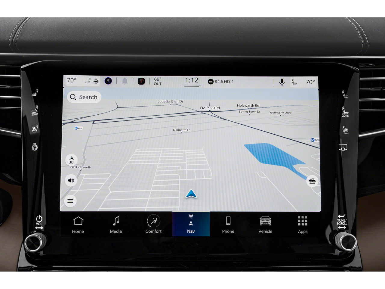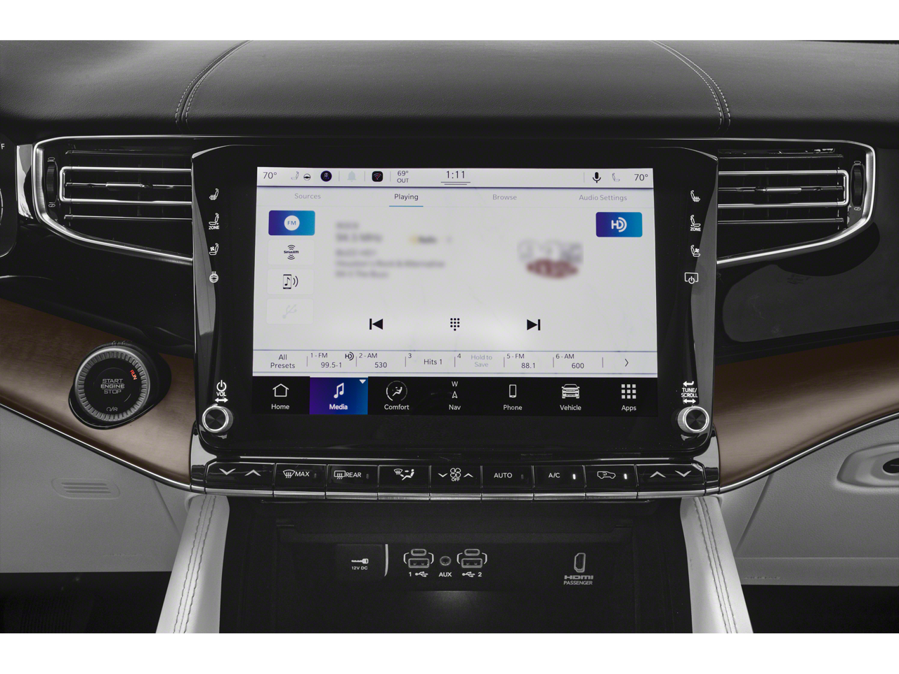 2nd Row Dual Charge-Only USB Ports, 3.92 Rear Axle Ratio, 3rd row seats: bench, 4-Wheel Disc Brakes, 8-Passenger Seating, ABS brakes, Adjustable pedals, Air Conditioning, Alloy wheels, AM/FM radio: SiriusXM with 360L, Amazon Fire TV Built-In, Anti-whiplash front head restraints, Audio memory, Auto High-beam Headlights, Auto-dimming door mirrors, Auto-dimming Rear-View mirror, Auto-leveling suspension, Automatic temperature control, Body Color Roof, Brake assist, Bumpers: body-color, Compass, Delay-off headlights, Driver door bin, Driver vanity mirror, Driver's Seat Mounted Armrest, Dual front impact airbags, Dual front side impact airbags, Electronic Stability Control, Emergency communication system: Automatic SOS Call, Flexible Seating Group, Four wheel independent suspension, Front anti-roll bar, Front Bucket Seats, Front Center Armrest w/Storage, Front dual zone A/C, Front fog lights, Front reading lights, Fully automatic headlights, Garage door transmitter, Genuine wood console insert, Genuine wood dashboard insert, Genuine wood door panel insert, HD Trailer Tow Package, Heads-Up Display, Heated door mirrors, Heated front seats, Heated rear seats, Heated steering wheel, Illuminated entry, Knee airbag, Leather steering wheel, Low tire pressure warning, Memory seat, Navigation System, Night vision lights, Normal Duty Suspension, Occupant sensing airbag, Outside temperature display, Overhead airbag, Overhead console, Panic alarm, Passenger door bin, Passenger seat mounted armrest, Passenger vanity mirror, Pedal memory, Power adjustable front head restraints, Power door mirrors, Power driver seat, Power Liftgate, Power moonroof, Power passenger seat, Power steering, Power windows, Premium Leather Trimmed Bucket Seats, Quick Order Package 23T Obsidian, Radio data system, Radio: Uconnect 5 Nav w/12.0 Display, Rain sensing wipers, Rear air conditioning, Rear anti-roll bar, Rear dual zone A/C, Rear reading lights, Rear seat center armrest, Rear Seat Video Group 1, Rear window defroster, Rear window wiper, Reclining 3rd row seat, Remote keyless entry, Removable Rear Tow Hook, Roof rack, Seatback Video Screens, Security system, Speed control, Speed-sensing steering, Speed-Sensitive Wipers, Split folding rear seat, Steering wheel memory, Steering wheel mounted audio controls, Tachometer, Telescoping steering wheel, Tilt steering wheel, Traction control, Trailer Hitch Zoom, Trip computer, Turn signal indicator mirrors, Two Tone Paint Group, Variably intermittent wipers, Ventilated front seats, Ventilated rear seats, Voltmeter, Wheels: 22 x 9.0 Premium 4 Aluminum, Wheels: 22 x 9.0 Tinted Polished w/Black Insert.