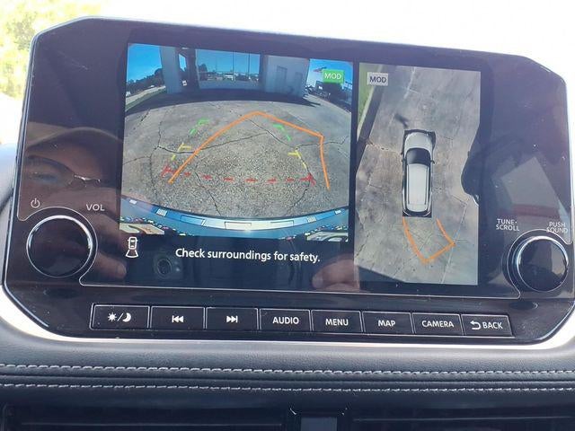 10 Speakers, 19 Aluminum Alloy Wheels, 4-Wheel Disc Brakes, 5.604 Axle Ratio, ABS brakes, Air Conditioning, Alloy wheels, AM/FM radio: SiriusXM, Auto High-beam Headlights, Auto-dimming Rear-View mirror, Automatic temperature control, Black Splash Guards (Set of 4), Bose Premium Audio System, Brake assist, Bumpers: body-color, Chrome Rear Bumper Protector, Delay-off headlights, Driver door bin, Driver vanity mirror, Dual front impact airbags, Dual front side impact airbags, Electronic Stability Control, Emergency communication system: NissanConnect Services, External Ground Lighting, First Aid Kit, Floor Mats w/2-Piece Cargo Area Protector, Four wheel independent suspension, Frameless Rearview Mirror w/Universal Remote, Front anti-roll bar, Front Bucket Seats, Front Center Armrest, Front dual zone A/C, Front reading lights, Fully automatic headlights, Heads-Up Display, Heated door mirrors, Heated Front Bucket Seats, Heated front seats, Heated steering wheel, Illuminated entry, Illuminated Kick Plates, Knee airbag, Leather steering wheel, Low tire pressure warning, Memory seat, Navigation system: NissanConnect Navigation, NissanConnect featuring Apple CarPlay and Android Auto, Occupant sensing airbag, Outside temperature display, Overhead airbag, Overhead console, Panic alarm, Passenger door bin, Passenger vanity mirror, Platinum Premium Package, Power door mirrors, Power driver seat, Power Liftgate, Power moonroof, Power passenger seat, Power steering, Power windows, Quilted Semi-Aniline Leather Seat Trim, Radio data system, Radio: AM/FM NissanConnect w/Navigation, Rear anti-roll bar, Rear Heated Seats, Rear reading lights, Rear seat center armrest, Rear side impact airbag, Rear window defroster, Rear window wiper, Remote keyless entry, Security system, Speed control, Speed-Sensitive Wipers, Split folding rear seat, Spoiler, Steering wheel mounted audio controls, Tachometer, Telescoping steering wheel, Tilt steering wheel, Traction control, Tri-Zone HVAC, Trip computer, Turn signal indicator mirrors, Variably intermittent wipers.
