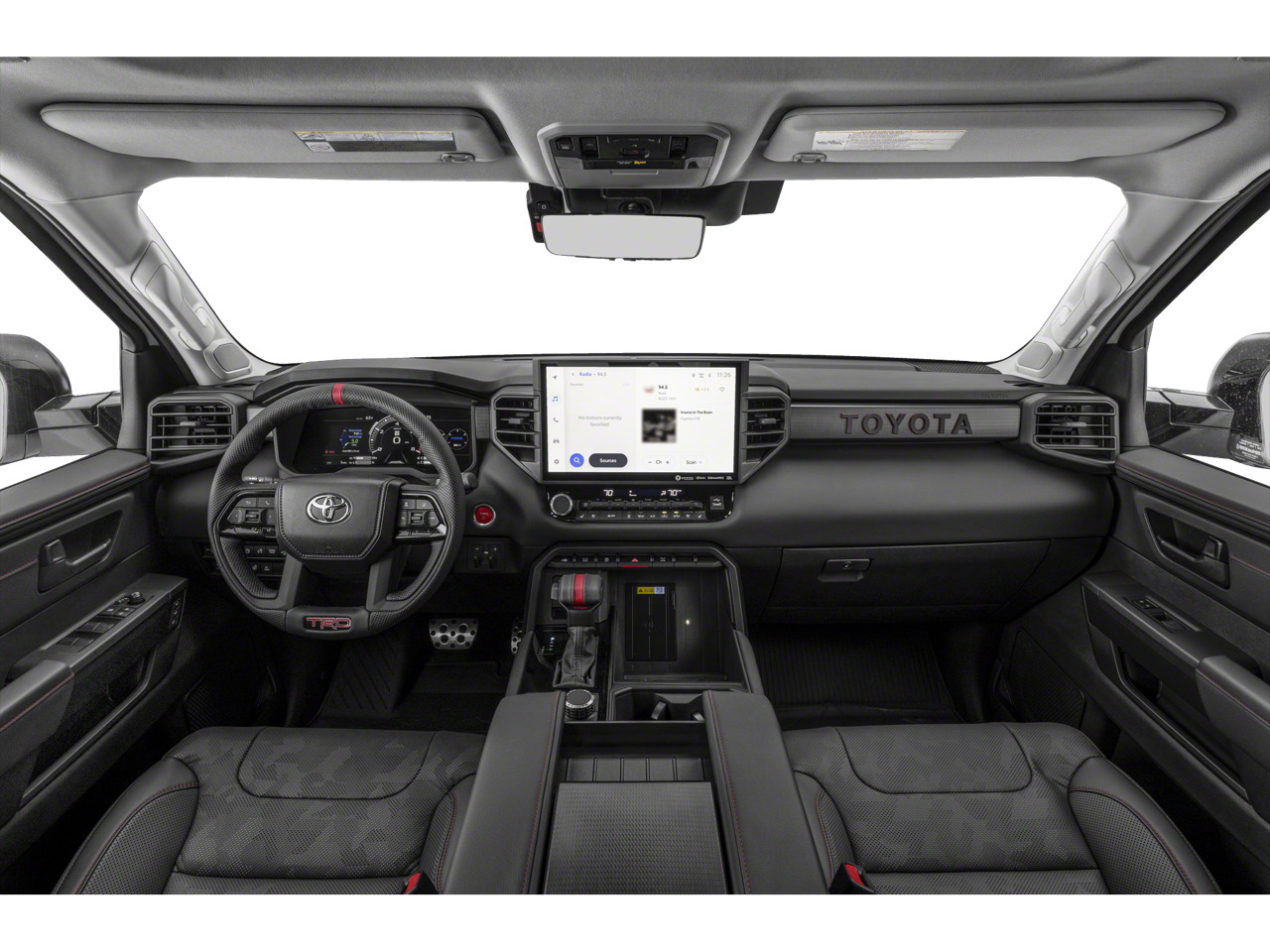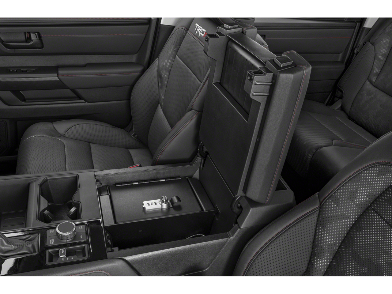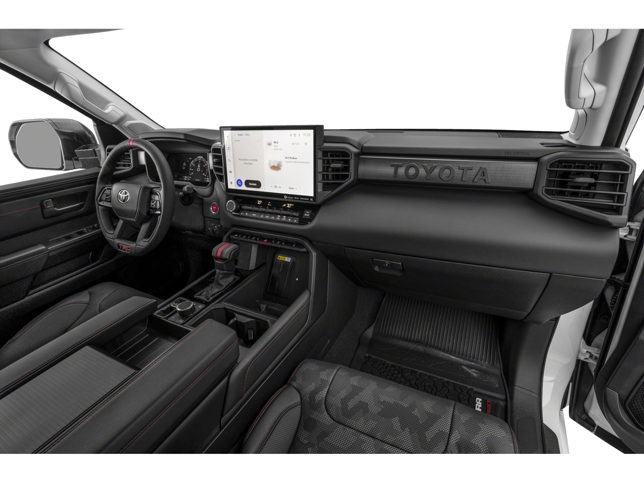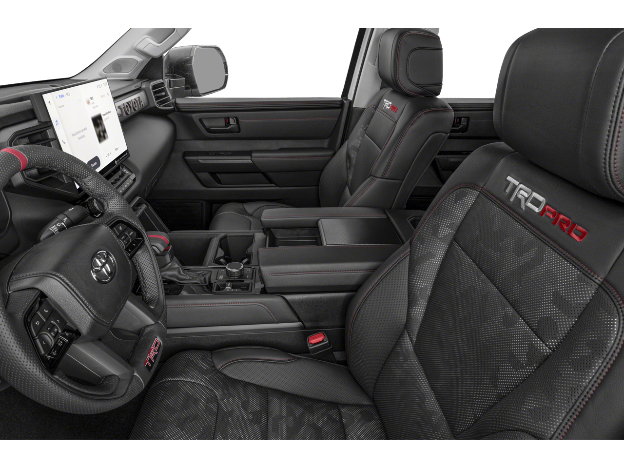 12 Speakers, 3.31 Axle Ratio, 4-Wheel Disc Brakes, 400W/120V AC Rear Seat & Bed Power Supply, ABS brakes, Air Conditioning, Alloy wheels, AM/FM radio: SiriusXM, Apple CarPlay/Android Auto, Auto High-beam Headlights, Auto-dimming door mirrors, Auto-dimming Rear-View mirror, Automatic temperature control, Black Dual Exhaust Tips w/Debossed TRD Pro Logo, Brake assist, Bumpers: body-color, Delay-off headlights, Driver door bin, Driver vanity mirror, Dual front impact airbags, Dual front side impact airbags, Electronic Stability Control, Emergency communication system: Safety Connect (10-year trial), Front & Rear Mud Guards, Front anti-roll bar, Front Bucket Seats, Front Center Armrest, Front dual zone A/C, Front fog lights, Front reading lights, Front wheel independent suspension, Fully automatic headlights, Garage door transmitter: HomeLink, Heated & Ventilated Front Bucket Seats, Heated Color-Keyed Outside Mirrors, Heated door mirrors, Heated front seats, Heated steering wheel, Illuminated entry, Knee airbag, Leather Shift Knob, LED Lightbar w/Fog & Marker Lights, Low tire pressure warning, Memory seat, Multi-Terrain Back Monitor, Navigation System, Occupant sensing airbag, Outside temperature display, Overhead airbag, Overhead console, Panic alarm, Panoramic View Back Monitor, Passenger door bin, Passenger vanity mirror, Power door mirrors, Power driver seat, Power moonroof, Power Panoramic Roof, Power passenger seat, Power steering, Power windows, Qi-Compatible Wireless Smartphone Charger, Radio data system, Radio: Premium Audio w/JBL, Rear reading lights, Rear seat center armrest, Rear step bumper, Rear window defroster, Remote keyless entry, Security system, Smoked-Finish Premium LED Headlights & DRL, SofTex Seat Trim, Speed control, Speed-sensing steering, Split folding rear seat, Sport steering wheel, Steering wheel mounted audio controls, Tachometer, Telescoping steering wheel, Tilt steering wheel, Towing Technology Package, Traction control, TRD Pro Heated Leather-Trimmed Steering Wheel, TRD Pro Package, Trip computer, Turn signal indicator mirrors, Variably intermittent wipers, Ventilated front seats, Voltmeter, Wheels: 18 x 8 Black BBS Forged Aluminum.