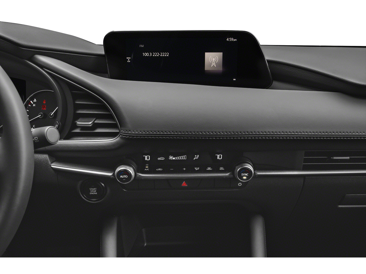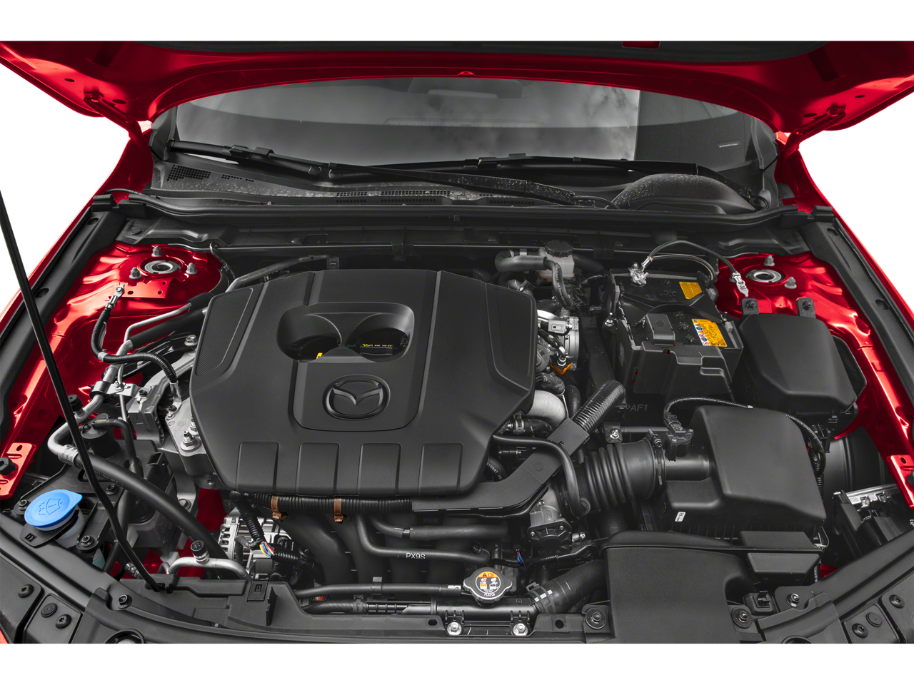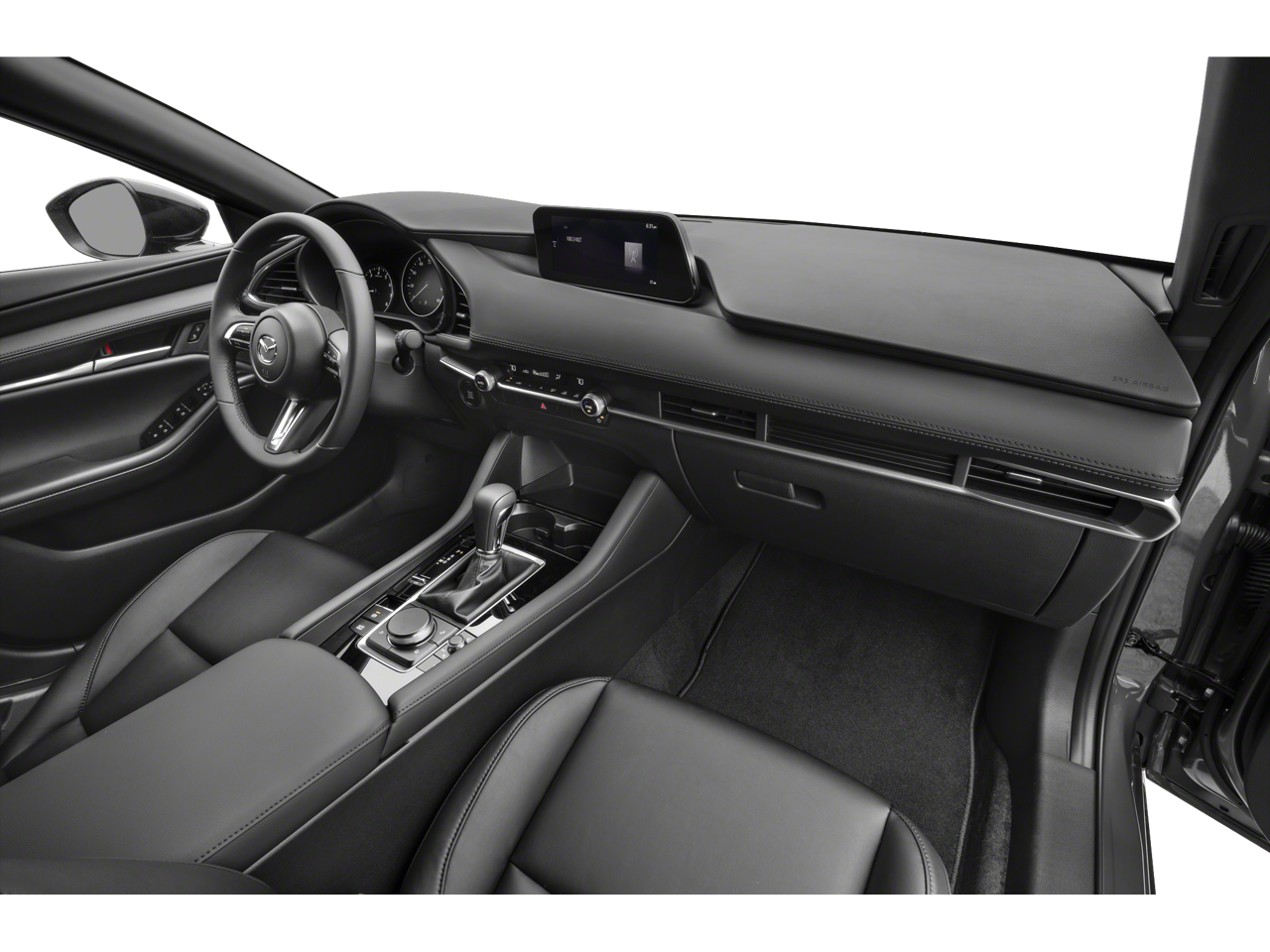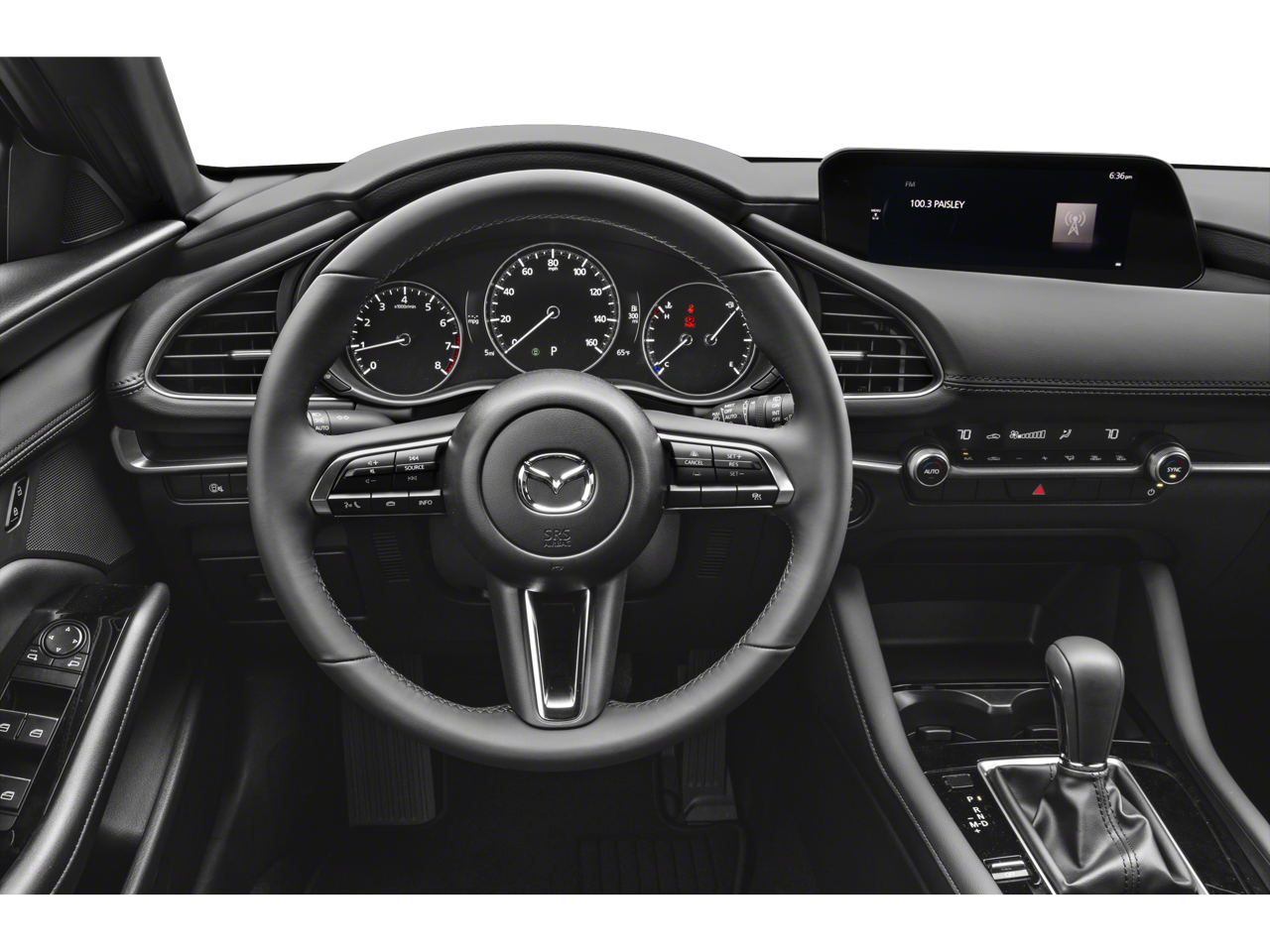 4-Wheel Disc Brakes, 6 Speakers, ABS brakes, Air Conditioning, Alloy wheels, AM/FM radio, AppLink/Apple CarPlay and Android Auto, Auto High-beam Headlights, Automatic temperature control, Brake assist, Bumpers: body-color, Compass, Delay-off headlights, Driver door bin, Driver vanity mirror, Dual front impact airbags, Dual front side impact airbags, Electronic Stability Control, Emergency communication system: Mazda Connected Services (3-year complimentary trial included), Exterior Parking Camera Rear, Front anti-roll bar, Front Bucket Seats, Front Center Armrest, Front dual zone A/C, Front reading lights, Front wheel independent suspension, Fully automatic headlights, Heated door mirrors, Illuminated entry, Knee airbag, Leather Shift Knob, Leather steering wheel, Leatherette Seat Trim, Low tire pressure warning, MAZDA CONNECT Infotainment System, Mazda Navigation System, Occupant sensing airbag, Outside temperature display, Overhead airbag, Overhead console, Panic alarm, Passenger door bin, Passenger vanity mirror, Power door mirrors, Power steering, Power windows, Radio data system, Radio: AM/FM Audio System, Rain sensing wipers, Rear seat center armrest, Rear side impact airbag, Rear window defroster, Rear window wiper, Remote keyless entry, Speed control, Speed-sensing steering, Split folding rear seat, Spoiler, Steering wheel mounted audio controls, Tachometer, Telescoping steering wheel, Tilt steering wheel, Traction control, Trip computer, Turn signal indicator mirrors, Variably intermittent wipers, Wheels: 18 x 7J Aluminum Alloy.