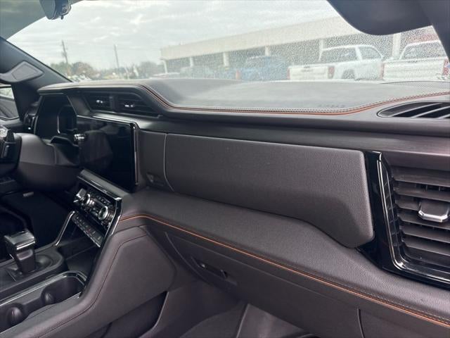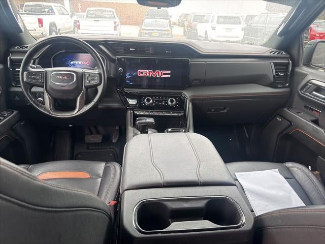 10-Way Power Driver Seat Adjuster w/Lumbar, 10-Way Power Passenger Seat Adjuster w/Lumbar, 120-Volt Bed Mounted Power Outlet, 120-Volt Interior Power Outlet, 18 x 8.5 Machined Aluminum Wheels, 2 Charge/Data USB Ports Inside Center Console, 2 Type-C Charge-Only Rear USB Ports, 2 USB Ports, 220 Amp Alternator, 3.23 Rear Axle Ratio, 4-Wheel Disc Brakes, 7 Speakers, SiriusXM with 360L, Apple CarPlay/Android Auto, AT4 Preferred Package, AT4 Premium Package, Auto High-beam Headlights, Auto-dimming door mirrors, Auto-dimming Rear-View mirror, Auto-Locking Rear Differential, Automatic Emergency Braking, Automatic temperature control, Bed View Camera, Black Chrome Header & Grille Insert Bars, Black Sport Step (LPO), Block heater, Brake assist, Buckle to Drive, Bumpers: body-color, Color-Keyed Carpeting Floor Covering, Compass, Deep-Tinted Glass, Delay-off headlights, Driver door bin, Driver Memory, Driver vanity mirror, Dual front impact airbags, Dual front side impact airbags, Electric Rear-Window Defogger, Electronic Stability Control, Engine Block Heater, Floor-Mounted Center Console, Following Distance Indicator, Forward Collision Alert, Front anti-roll bar, Front Bucket Seats, Front Center Armrest, Front dual zone A/C, Front fog lights, Front License Plate Kit, Front Pedestrian Braking, Front Prem Floor Liners w/Removable Carpet Insert, Front Rain-Sensing Wipers, Front reading lights, Front wheel independent suspension, Fully automatic headlights, GMC Connected Access Capable, HD Surround Vision, Heated 2nd Row Outboard Seats, Heated door mirrors, Heated Driver & Front Outboard Passenger Seating, Heated front seats, Heated rear seats, Heated steering wheel, Heavy-Duty Air Filter, Hill Descent Control, Hitch Guidance, Hitch View, Illuminated entry, In-Vehicle Trailering System App, Integrated Trailer Brake Controller, IntelliBeam Automatic High Beam On/Off, Keyless Open & Start, Lane Keep Assist w/Lane Departure Warning, LED Cargo Area Lighting, Low tire pressure warning, Memory seat, Multicolor 15 Diagonal Head-Up Display, Navigation System, Occupant sensing airbag, Off-Road High Clearance Step (LPO), Off-Road Suspension, OnStar & GMC Connected Services Capable, Outside temperature display, Overhead airbag, Overhead console, Panic alarm, Passenger door bin, Passenger vanity mirror, Perforated Front Leather Seat Trim, Perimeter Lighting, Power Door Locks, Power door mirrors, Power driver seat, Power Front Passenger Windows w/Express Up/Down, Power Front Windows w/Driver Express Up/Down, Power passenger seat, Power Rake & Telescoping Steering Column, Power Rear Windows w/Express Down, Power Sliding Rear Window w/Rear Defogger, Power steering, Power windows, Preferred Equipment Group 4SB, Premium audio system: GMC Infotainment System, Premium Bose 7-Speaker Sound System, Push Button Start, Radio data system, Radio: Premium GMC Infotainment Audio System, Rain sensing wipers, Rear Camera Mirror, Rear Cross Traffic Braking, Rear Pedestrian Detection, Rear Prem Floor Liners w/Removable Carpet Insert, Rear reading lights, Rear seat center armrest, Rear step bumper, Rear Wheelhouse Liners, Rear window defroster, Red Recovery Hooks, Remote keyless entry, Remote Vehicle Starter System, Safety Alert Seat, Security system, SiriusXM w/360L, Speed control, Speed-sensing steering, Split folding rear seat, Spray-On Pickup Bedliner w/AT4 Logo, Steering Wheel Audio Controls, Steering wheel mounted audio controls, Tachometer, Technology Package, Telescoping steering wheel, Theft Deterrent System (Unauthorized Entry), Tilt steering wheel, Traction control, Trailer Camera Provisions, Trailer Side Blind Zone Alert, Trailering Package, Trip computer, Ultrasonic Front & Rear Park Assist, Universal Home Remote, Variably intermittent wipers, Ventilated Driver & Front Passenger Seats, Ventilated front seats