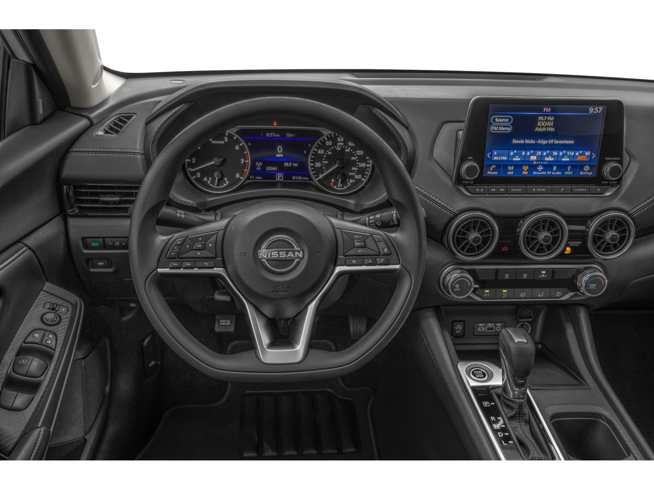 16 Alloy Wheels, 4-Wheel Disc Brakes, 6 Speakers, ABS brakes, Air Conditioning, All-Weather Package, Alloy wheels, AM/FM radio: SiriusXM, Auto High-beam Headlights, Blind Spot Warning, Body Colored Splash Guards (4-Piece), Brake assist, Bumpers: body-color, Carpeted Floor Mats w/Trunk Mat, Delay-off headlights, Door Sill Plates, Driver door bin, Driver vanity mirror, Dual front impact airbags, Dual front side impact airbags, Dual Zone Auto Climate Control, Electronic Stability Control, Four wheel independent suspension, Front anti-roll bar, Front Bucket Seats, Front Center Armrest, Front reading lights, Fully automatic headlights, Heated Exterior Mirrors, Heated Front Seats, Illuminated entry, Knee airbag, Leather steering wheel, Leather-Wrapped Heated Steering Wheel, Low tire pressure warning, NissanConnect featuring Apple CarPlay and Android Auto, Occupant sensing airbag, Outside temperature display, Overhead airbag, Overhead console, Panic alarm, Passenger door bin, Passenger vanity mirror, Power door mirrors, Power steering, Power windows, Radio data system, Radio: AM/FM w/RDS/MP3/Aux-In, Rear anti-roll bar, Rear Parking Sensors, Rear side impact airbag, Rear window defroster, Remote Engine Start, Remote keyless entry, Security system, Speed control, Speed-sensing steering, Split folding rear seat, Steering wheel mounted audio controls, Tachometer, Telescoping steering wheel, Tilt steering wheel, Traction control, Trip computer, Upgraded Cloth Seat Trim, Variably intermittent wipers.