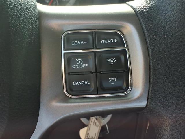 17 x 7 Aluminum Wheels, 3.21 Rear Axle Ratio, 4-Wheel Disc Brakes, 40/20/40 Split Bench Seat, 6 Speakers, ABS brakes, Active Grille Shutters, Air Conditioning, Alloy wheels, AM/FM radio: SiriusXM, Audio Input Jack for Mobile Devices, Black Exterior Mirrors, Brake assist, Bumpers: chrome, Center Hub, Charge Only Remote USB Port, Cloth 40/20/40 Bench Seat, Compass, Delay-off headlights, Driver door bin, Dual front impact airbags, Dual front side impact airbags, Electronic Shift, Electronic Stability Control, Exterior Mirrors w/Heating Element, Front anti-roll bar, Front Armrest w/3 Cupholders, Front Center Armrest w/Storage, Front License Plate Bracket, Front reading lights, Front wheel independent suspension, Fully automatic headlights, GPS Antenna Input, Heated door mirrors, Illuminated entry, Integrated Voice Command w/Bluetooth®, Low tire pressure warning, Manufacturer's Statement of Origin, Occupant sensing airbag, Outside temperature display, Overhead airbag, Overhead console, Panic alarm, ParkView Rear Back-Up Camera, Passenger door bin, Passenger vanity mirror, Power door mirrors, Power steering, Power windows, Quick Order Package 29G SLT, Radio data system, Radio: Uconnect 3 w/5 Display, Rear anti-roll bar, Rear step bumper, Remote keyless entry, Remote USB Port, Speed control, Tachometer, Tilt steering wheel, Tip Start, Traction control, Trip computer, Variably intermittent wipers, Voltmeter.