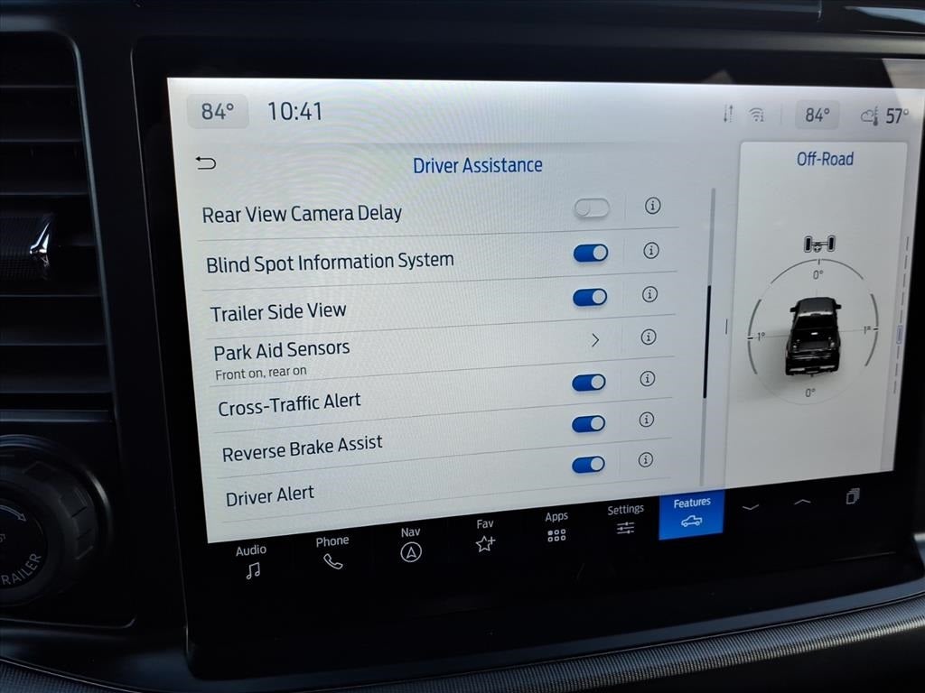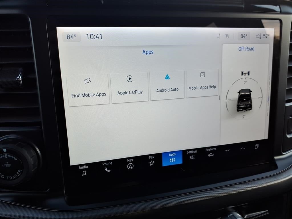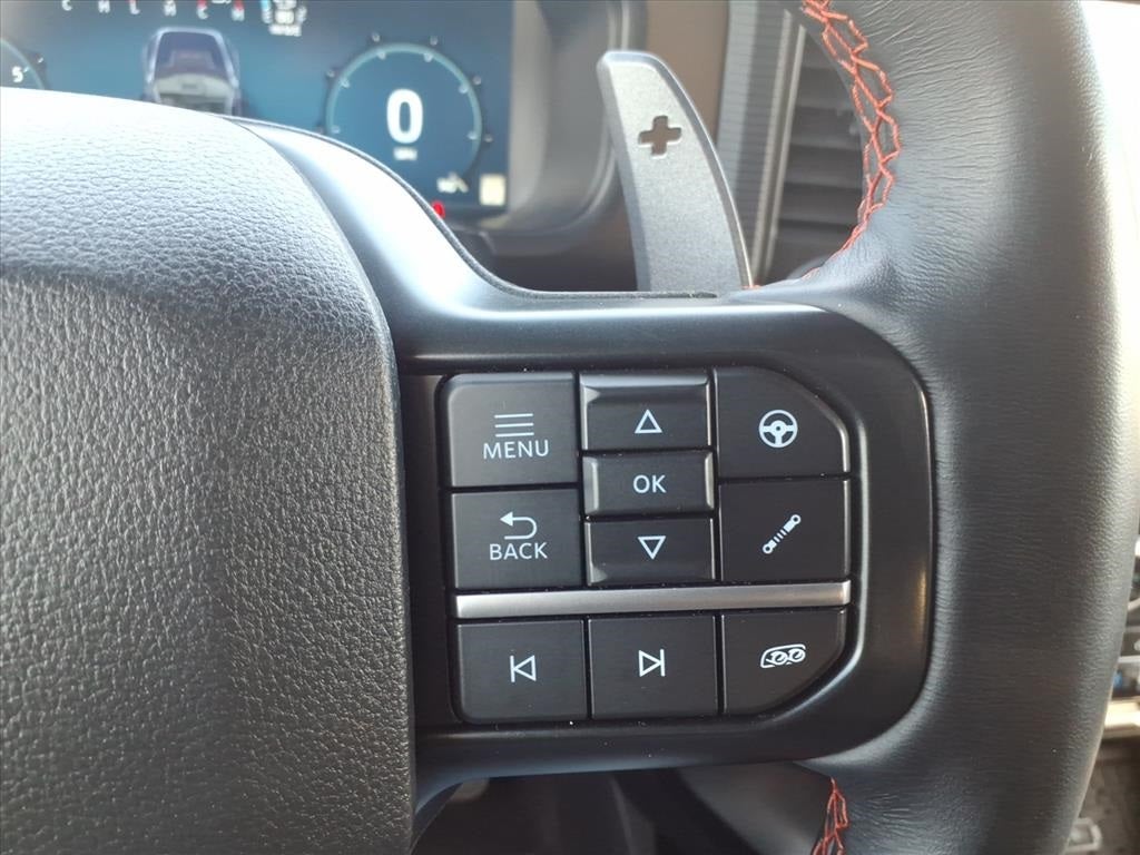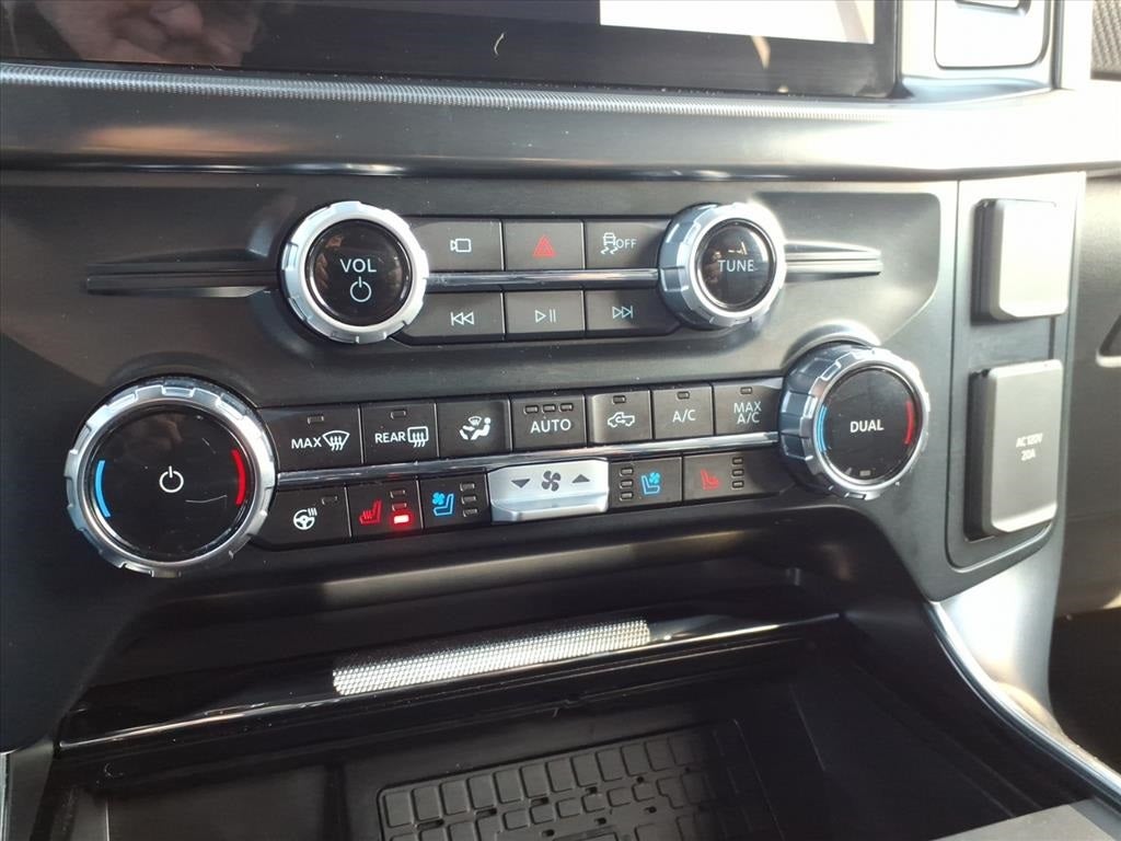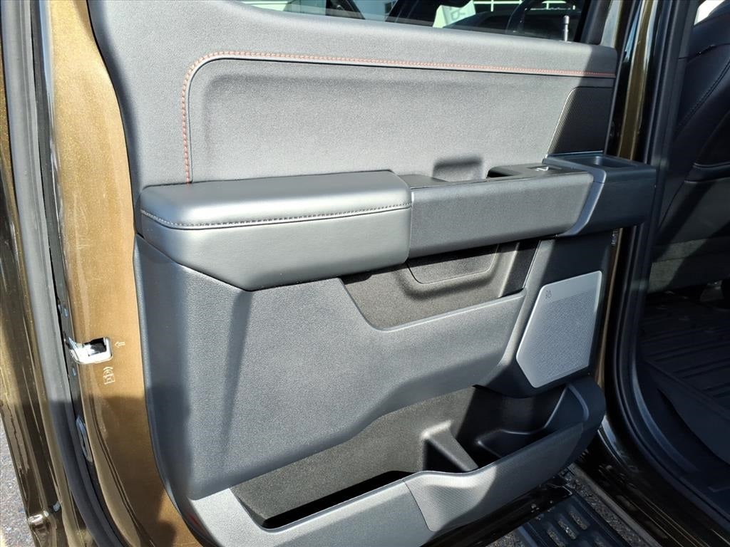 14 Speakers, 17 Cast Aluminum Wheels, 4-Wheel Disc Brakes, ABS brakes, Adjustable pedals, Air Conditioning, Alloy wheels, AM/FM radio: SiriusXM with 360L, Auto High-beam Headlights, Auto tilt-away steering wheel, Auto-dimming door mirrors, Auto-dimming Rear-View mirror, Automatic temperature control, Brake assist, Bumpers: body-color, Compass, Delay-off headlights, Driver door bin, Driver vanity mirror, Dual front impact airbags, Dual front side impact airbags, Electronic Locking w/4.10 Axle Ratio, Electronic Stability Control, Emergency communication system: SYNC 4 911 Assist, Equipment Group 801A Standard, Front anti-roll bar, Front Bucket Seats, Front Center Armrest, Front dual zone A/C, Front fog lights, Front reading lights, Front wheel independent suspension, Fully automatic headlights, Garage door transmitter, Heads-Up Display, Heated door mirrors, Heated front seats, Heated rear seats, Heated steering wheel, Illuminated entry, Lane Departure Warning System, Leather steering wheel, Leather Trimmed Seats, Low tire pressure warning, Memory seat, Navigation system: Connected Navigation, Occupant sensing airbag, Outside temperature display, Overhead airbag, Overhead console, Panic alarm, Passenger door bin, Passenger vanity mirror, Pedal memory, Power door mirrors, Power driver seat, Power passenger seat, Power steering, Power windows, Radio data system, Radio: B&O Unleashed Sound System by Bang & Olufsen, Rain sensing wipers, Rear reading lights, Rear step bumper, Rear window defroster, Remote keyless entry, Security system, Speed control, Speed-sensing steering, Split folding rear seat, Steering wheel memory, Steering wheel mounted audio controls, SYNC 4 w/Enhanced Voice Recognition, Tachometer, Telescoping steering wheel, Tilt steering wheel, Tough Bed Spray-In Bedliner, Traction control, Trip computer, Turn signal indicator mirrors, Twin Panel Moonroof, Variably intermittent wipers, Ventilated front seats.