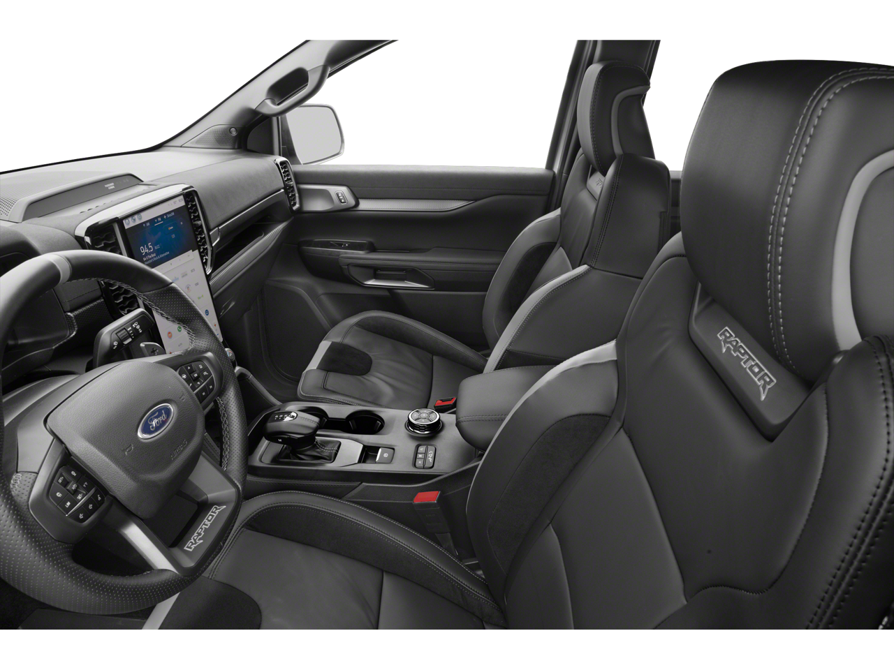 4WD, 10 Speakers, 4-Wheel Disc Brakes, 4.27 Axle Ratio, ABS brakes, Air Conditioning, Alloy wheels, AM/FM radio: SiriusXM, Auto High-beam Headlights, Auto-dimming Rear-View mirror, Automatic temperature control, Brake assist, Compass, Delay-off headlights, Driver door bin, Driver vanity mirror, Dual front impact airbags, Dual front side impact airbags, Electronic Stability Control, Emergency communication system: SYNC 4 911 Assist, Equipment Group 800A Standard, Front & Rear Splash Guards/Mud Flaps, Front anti-roll bar, Front Bucket Seats, Front Center Armrest, Front dual zone A/C, Front fog lights, Front reading lights, Front wheel independent suspension, Fully automatic headlights, Garage door transmitter, Heated door mirrors, Heated front seats, Heated steering wheel, Illuminated entry, Internet access capable: FordPass Connect 4G, Leather Shift Knob, Leather steering wheel, Leather-Trimmed Front Heated Bucket Seats, Low tire pressure warning, Memory seat, Navigation system: Connected Navigation, Occupant sensing airbag, Outside temperature display, Overhead airbag, Overhead console, Panic alarm, Passenger door bin, Passenger vanity mirror, Power door mirrors, Power driver seat, Power passenger seat, Power steering, Power windows, Radio: B&O Sound System by Bang & Olufsen, Rain sensing wipers, Rear reading lights, Rear seat center armrest, Rear step bumper, Rear window defroster, Remote keyless entry, Security system, SiriusXM Satellite Radio, Speed control, Speed-sensing steering, Steering wheel mounted audio controls, SYNC 4A, Telescoping steering wheel, Tilt steering wheel, Traction control, Trip computer, Turn signal indicator mirrors, Variably intermittent wipers, Voltmeter, Wheels: 17 Forged Beadlock Capable, Wheels: 17 Gray-Painted Aluminum, 4WD.