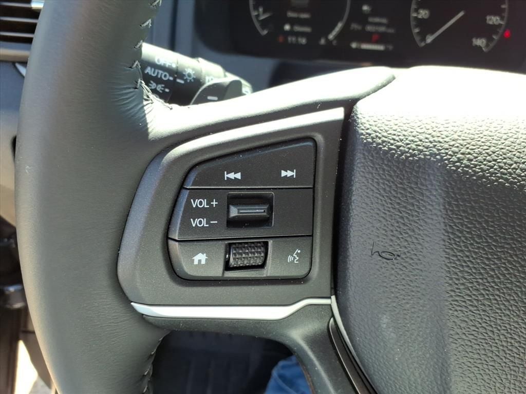 4-Wheel Disc Brakes, 4.33 Axle Ratio, 7 Speakers, ABS brakes, Air Conditioning, Alloy wheels, AM/FM radio: SiriusXM, Auto-dimming Rear-View mirror, Automatic temperature control, Blind Spot Information (BSI) System warning, Bluetooth® Hands-Free Link, Brake assist, Bumpers: body-color, Compass, Delay-off headlights, Driver door bin, Driver vanity mirror, Driver's Seat Mounted Armrest, Dual front impact airbags, Dual front side impact airbags, Electronic Stability Control, Emergency communication system: HondaLink Assist, Exterior Parking Camera Rear, Four wheel independent suspension, Front anti-roll bar, Front Bucket Seats, Front dual zone A/C, Front fog lights, Front reading lights, Fully automatic headlights, Garage door transmitter: HomeLink, Heated door mirrors, Heated Front Bucket Seats, Heated front seats, Illuminated entry, Leather Seat Trim, Leather steering wheel, Low tire pressure warning, Memory seat, Occupant sensing airbag, Outside temperature display, Overhead airbag, Overhead console, Panic alarm, Passenger door bin, Passenger seat mounted armrest, Passenger vanity mirror, Power door mirrors, Power driver seat, Power moonroof, Power passenger seat, Power steering, Power windows, Radio data system, Radio: 215-Watt Audio System w/7 Speakers, Rear air conditioning, Rear anti-roll bar, Rear reading lights, Rear seat center armrest, Rear step bumper, Rear window defroster, Remote keyless entry, Security system, SiriusXM, Speed control, Speed-sensing steering, Split folding rear seat, Steering wheel mounted audio controls, Tachometer, Telescoping steering wheel, Tilt steering wheel, Traction control, Trip computer, Turn signal indicator mirrors, Variably intermittent wipers, Wheels: 18 Pewter Gray Machine-Finished Alloy.