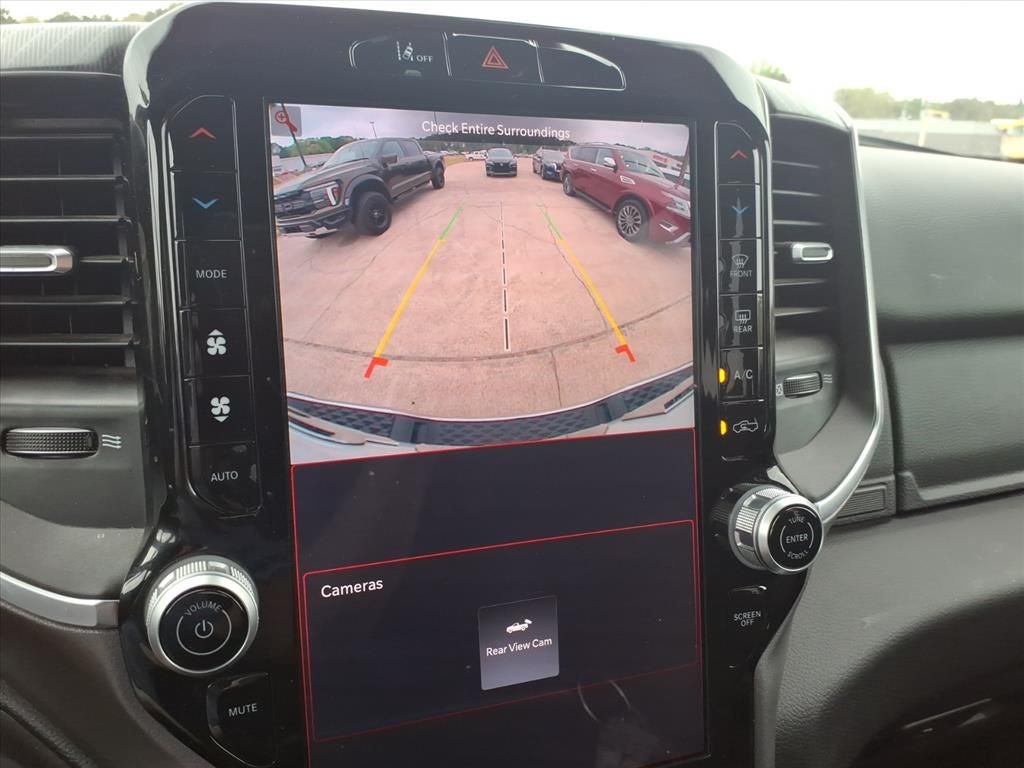 115V Auxiliary Power Outlet, 115V Auxiliary Rear Power Outlet, 12 Touchscreen Display, 2nd Row In Floor Storage Bins, 3 Rear Seat Head Restraints, 4 Way Front Headrests, 4-Wheel Disc Brakes, 400W Inverter, 4G LTE Wi-Fi Hot Spot, 6 Speakers, 9 Amplified Speakers w/Subwoofer, ABS brakes, Air Conditioning, Air Conditioning ATC w/Dual Zone Control, Alloy wheels, AM/FM radio, Apple CarPlay, Apple CarPlay/Android Auto, Auto High-beam Headlights, Auto Power-Folding Mirrors, Auto-Dimming Exterior Driver Mirror, Auto-Dimming Rear-View Mirror, Big Horn Level 2 Equipment Group, Black Exterior Mirrors, Black Premium Power Mirrors, Brake assist, Bumpers: chrome, Cloth Bench Seat, Cluster 7.0 TFT Color Display, Compass, Configurable Drive Mode, Connected Travel & Traffic Services, Connectivity - US/Canada, Convex Wide-Angle Exterior Mirror Insert, Delay-off headlights, Driver door bin, Dual front impact airbags, Dual front side impact airbags, Electronic Stability Control, Exterior Mirrors Courtesy Lamps, Exterior Mirrors w/Heating Element, Exterior Mirrors w/Supplemental Signals, Front anti-roll bar, Front Center Armrest w/Storage, Front fog lights, Front License Plate Bracket, Front reading lights, Front Seat Back Map Pockets, Front wheel independent suspension, Fully automatic headlights, Glove Box Lamp, Google Android Auto, GPS Antenna Input, GPS Navigation, HD Radio, Heated door mirrors, Heated Front Seats, Heated Steering Wheel, Illuminated entry, Integrated Voice Command w/Bluetooth®, Leather Wrapped Steering Wheel, LED Dome Lamp w/On/Off Switch, LED Footwell Lighting, Low tire pressure warning, Manual Adjust 4-Way Front Passenger Seat, Manual Folding Exterior Mirrors, Manufacturer's Statement of Origin, Media Hub w/2 Charge Only USBs, Occupant sensing airbag, Outside temperature display, Overhead airbag, Overhead console, Overhead LED Lamps, Panic alarm, ParkView Rear Back-Up Camera, Passenger door bin, Passenger vanity mirror, Power 2-Way Driver Lumbar Adjust, Power Adjust 8-Way Driver Seat, Power Adjustable Pedals, Power door mirrors, Power steering, Power windows, Premium Overhead Console, Quick Order Package 21Z Big Horn, Radio data system, Radio: Uconnect 5 Nav w/12.0 Display, Radio: Uconnect 5 W w/8.4 Display, RAM Grille Badge - Chrome, Rear 60/40 Folding Seat, Rear anti-roll bar, Rear Power Sliding Window, Rear seat center armrest, Rear step bumper, Rear Window Defroster, Remote keyless entry, Remote Tailgate Release, Security Alarm, SiriusXM w/360L, Speed control, Split folding rear seat, Steering Wheel Mounted Audio Controls, Sun Visors w/Illuminated Vanity Mirrors, Supplier Part Tracking (J-1), Tachometer, Telescoping steering wheel, Tilt steering wheel, Traction control, Trip computer, Universal Garage Door Opener, USB Host Flip, Variably intermittent wipers, Voltmeter, Wheels: 18 x 8 Cast-Aluminum Painted, BACK UP CAMERA,