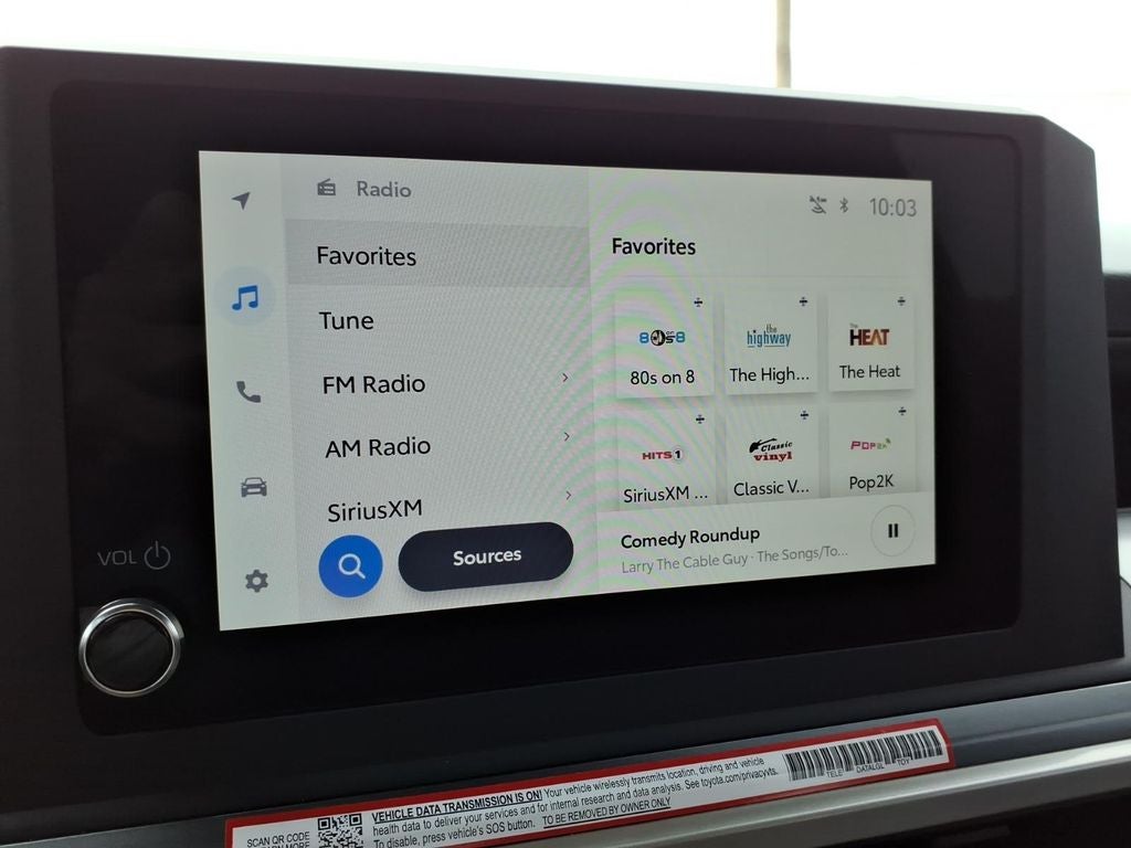 18 Wheels, 3.583 Axle Ratio, 4-Wheel Disc Brakes, 6 Speakers, ABS brakes, Air Conditioning, Alloy wheels, AM/FM radio: SiriusXM, Anti-whiplash front head restraints, Apple CarPlay/Android Auto, Auto High-beam Headlights, Auto-dimming Rear-View mirror, Automatic temperature control, Brake assist, Bumpers: body-color, Driver door bin, Driver vanity mirror, Dual front impact airbags, Dual front side impact airbags, Electronic Stability Control, Emergency communication system: Safety Connect (up to 10-year trial subscription), Exterior Parking Camera Rear, Fabric Seat Trim, Four wheel independent suspension, Front anti-roll bar, Front Bucket Seats, Front Center Armrest, Front fog lights, Front reading lights, Fully automatic headlights, Heated door mirrors, Illuminated entry, Knee airbag, Leather Shift Knob, Leather steering wheel, Low tire pressure warning, Occupant sensing airbag, Outside temperature display, Overhead airbag, Overhead console, Panic alarm, Passenger door bin, Passenger vanity mirror, Power door mirrors, Power steering, Power windows, Radio: 8 Toyota Audio Multimedia, Rear step bumper, Rear window defroster, Remote keyless entry, Security system, Speed control, Speed-sensing steering, Split folding rear seat, Steering wheel mounted audio controls, Tachometer, Telescoping steering wheel, Tilt steering wheel, Traction control, Trip computer, Turn signal indicator mirrors, Variably intermittent wipers, **LOCAL TRADE**, BACK UP CAMERA, **TOW PKG**, **APPLE CARPLAY**, **ANDROID AUTO**, **ONE-OWNER**, **LOW MILES**, UPGRADED TIRES.